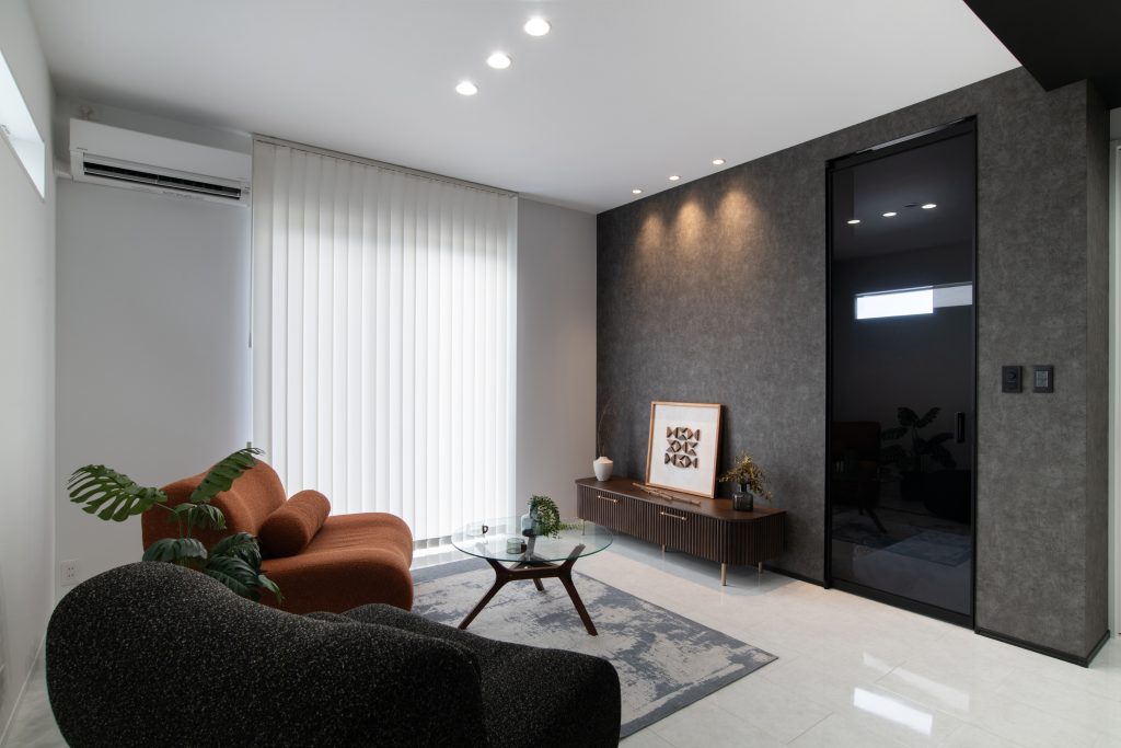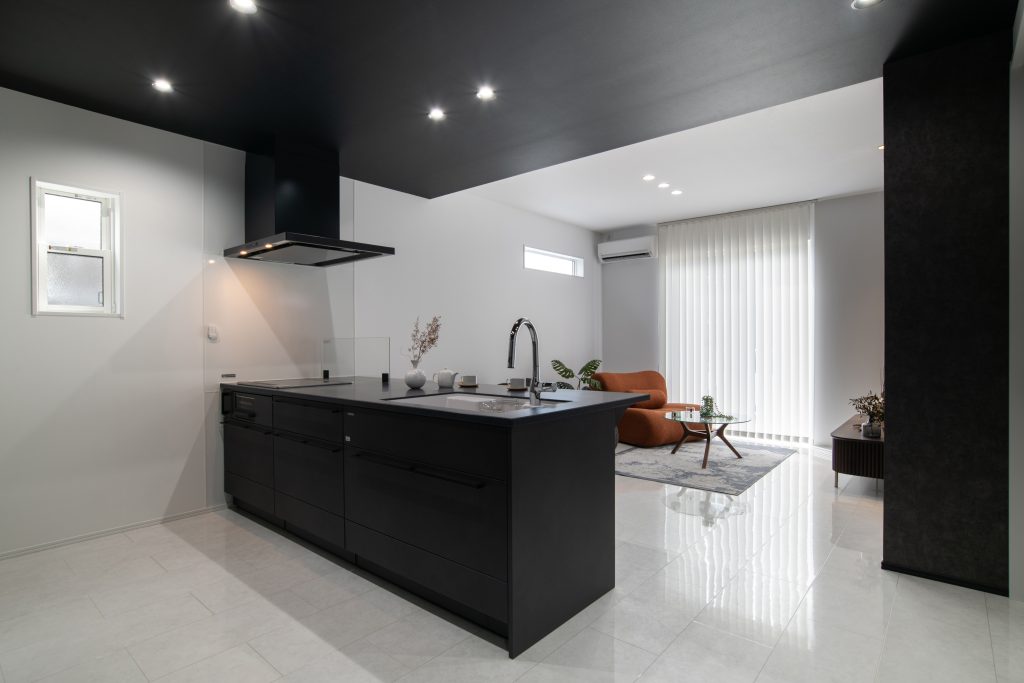 『黒と白が際立つハイセンスな住まい』は、収納力のある間取りとシックなモノトーン空間にこだわりの壁紙やガラスの抜け感を取り入れた、心地よく上質な暮らしを叶えるお家です。