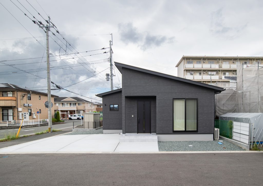 今回ご紹介する物件は、ブラックの外壁に片流れ屋根を組み合わせた、クールでスタイリッシュな印象のお家です。
